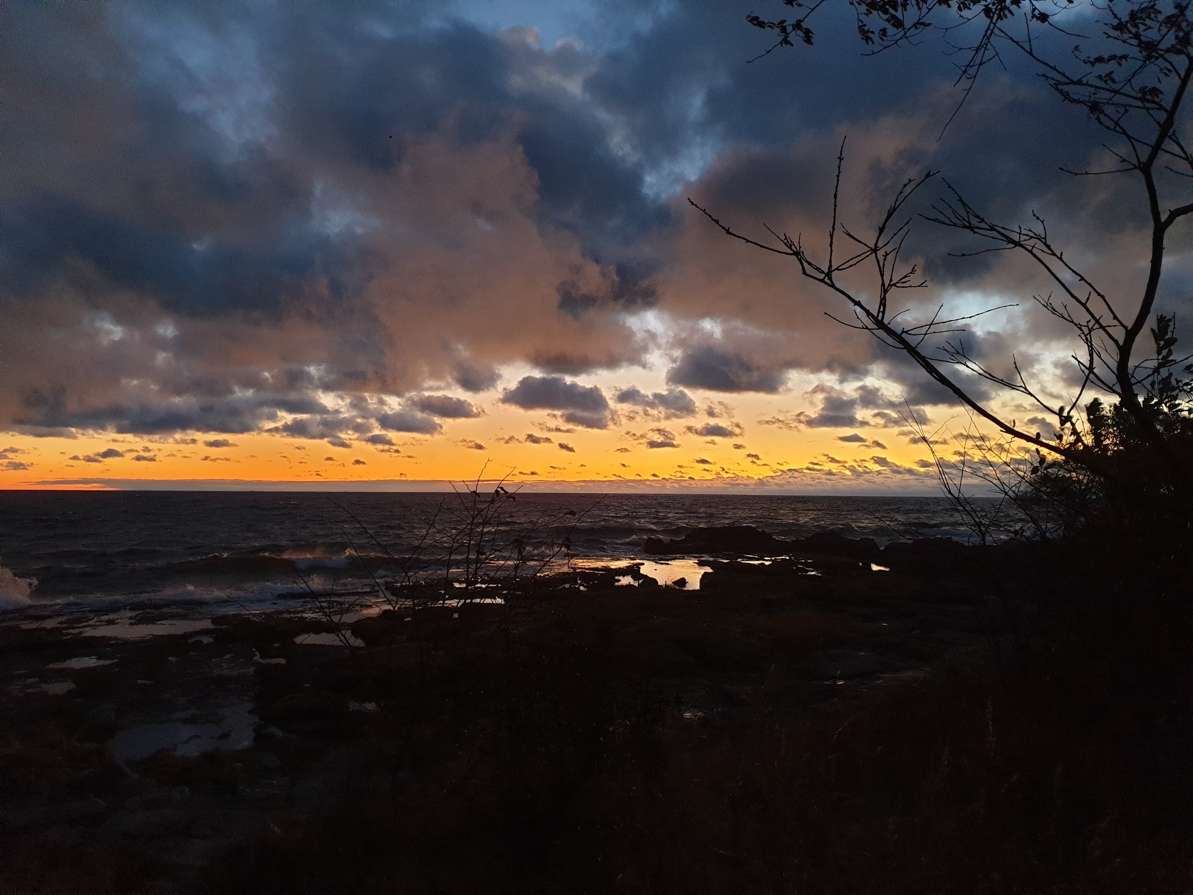 När vi kom fram till parkeringen vid Prästens badkar i Vik på fredagskvällen, var det halv storm och spöregn. Havet är förvisso vackert även i storm, och himlen imponerande, men man kanske inte är så benägen till utomhusaktiviteter? Som tur var så hade vi förberett mat (chili) och hällt i mattermosen, så det var bara att stänga alla dörrar och avnjuta måltiden inne i bilen. Vi insåg att det kanske var läge att hitta en alternativ plan om vi ville ut och vandra på lördagen.