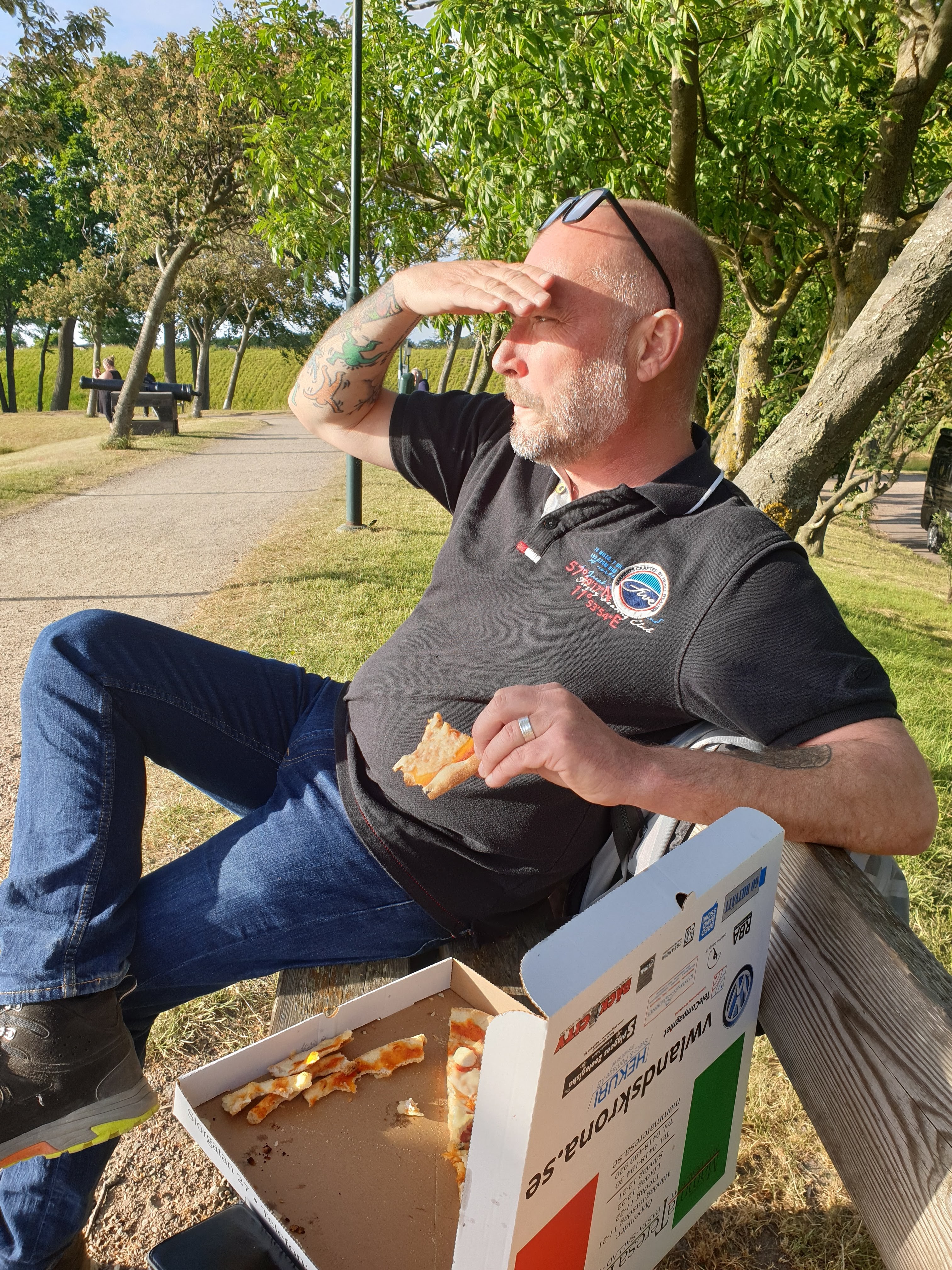 Campinglivet kan onekligen se lite olika ut dag för dag. I helgen fricampade vi, lagade vår mat över öppen eld och vandrade. I går ställde vi bilen vid citadellet i Landskrona och beställde hämtpizza från Mamma Teresa Restaurang. Otroligt god pizza som avnjöts på en bänk med utsikt över havet.