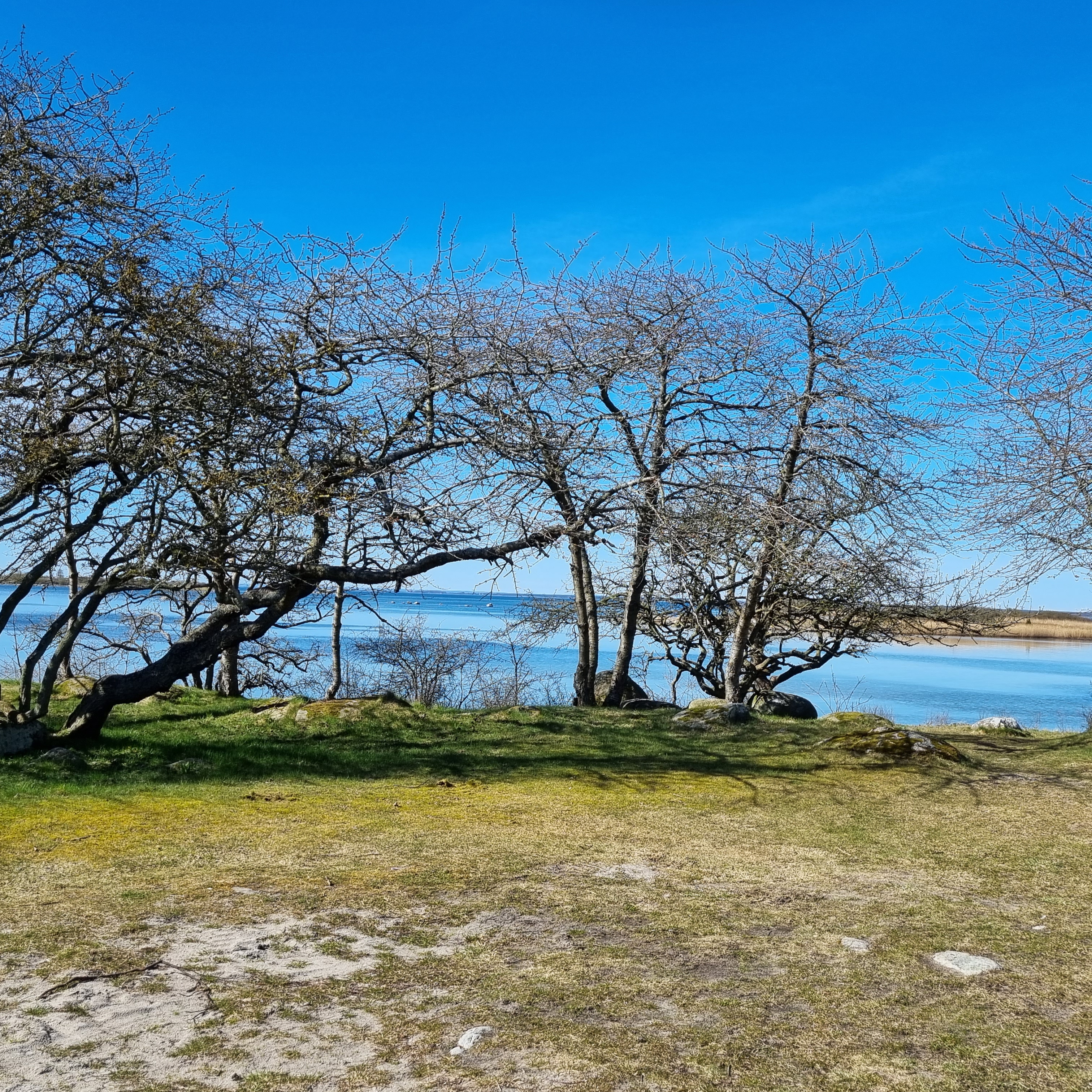 Och äntligen kom det lite vårvärme! Vi som varit ute nu hela den långa tidvis blåsiga och regniga hösten/vintern/våren har nästan glömt bort känslan av att ta en kaffe utanför bilen. Eller att gasoltuben räcker hur länge som helst igen när bilen håller värmen även på natten. Och campingen låg otroligt vackert vid kusten så även den tidiga hundrundan var en ren njutning.