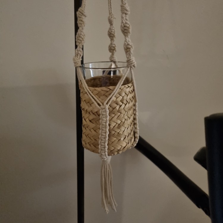 Så projektet nu är att lära sig, eller mig rättare sagt, makramé! Då kan jag knopa ihop hängande korgar för både frukt och örter och hänga upp med självhäftande krokar. Inget borrande, men fullt av grönt och härliga dofter! När jag lärt mig vill säga, men jag är envis 🙂