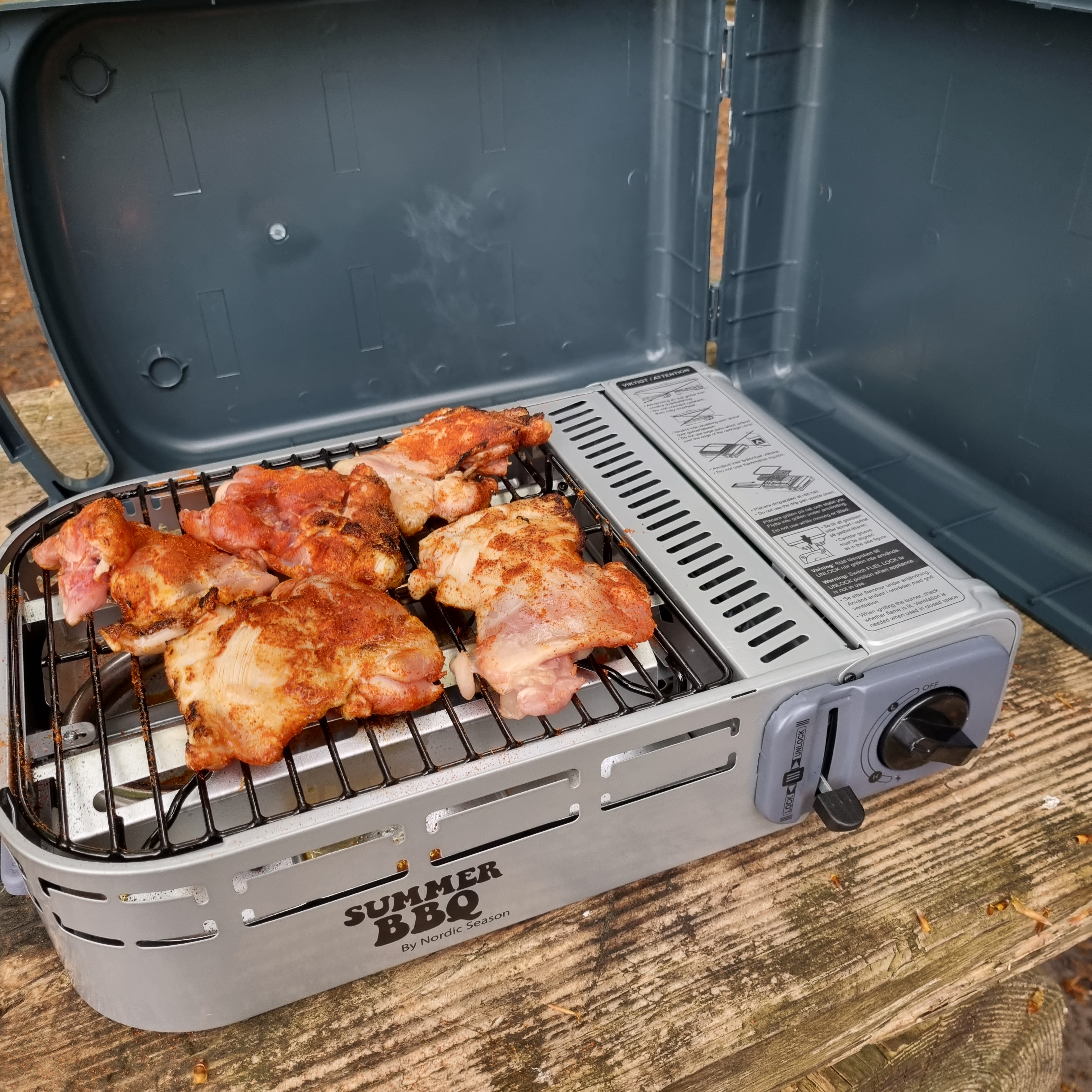 Vi invigde även vår nya gasolgrill på kvällen. Vi har en kolgrill från Heston Blumentahl, som vi älskar, men nackdelen med kolgrill är att det tar tid innan den svalnar, så man steker hellre korven på lunchen än grillar och det ville vi råda bot på. Den lilla grillen från COOP funkade över förväntan!