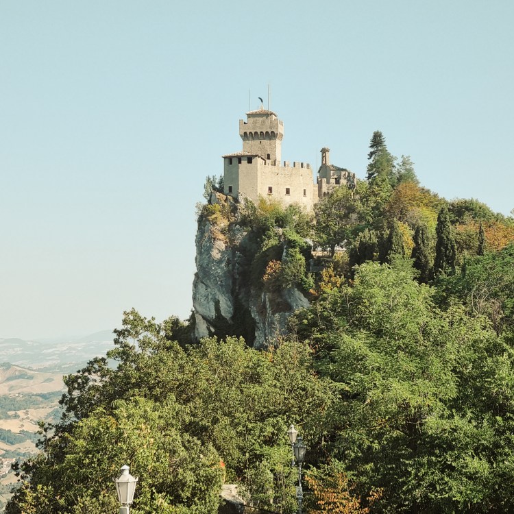 Vi erkänner. Vi hade noll koll på San Marino. Men vi hittade en gratis ställplats i Park4Night när vi irrade omkring runt Rimini, och tänkte att den tar vi. Att San Marino var ett eget land hade nog swishat förbi på nån geografilektion, men inte fastnat hos oss i alla fall 🙂 Vi såg gratis övernattning med utsikt.