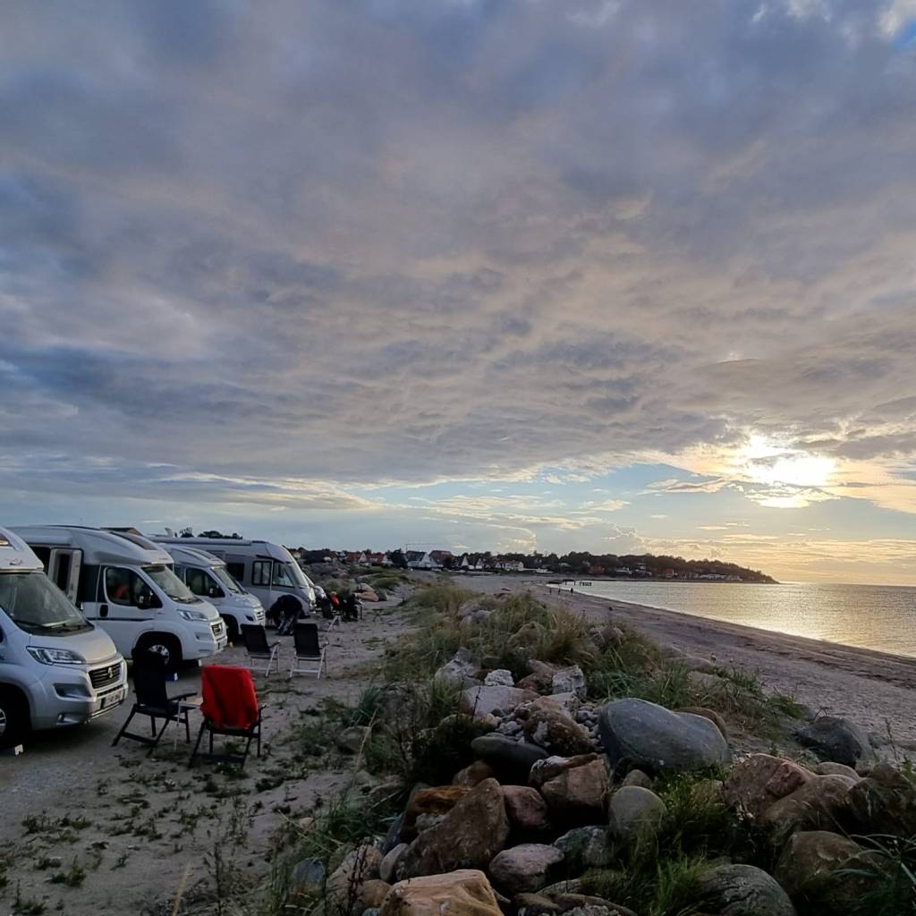 I hamnen finns en fin ställplats med plats för ett tiotal bilar. Du har havet direkt framför nosen, och tillgång till både toaletter och färskvatten, till det facila priset av 100 DKK.