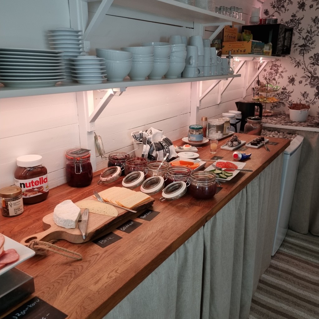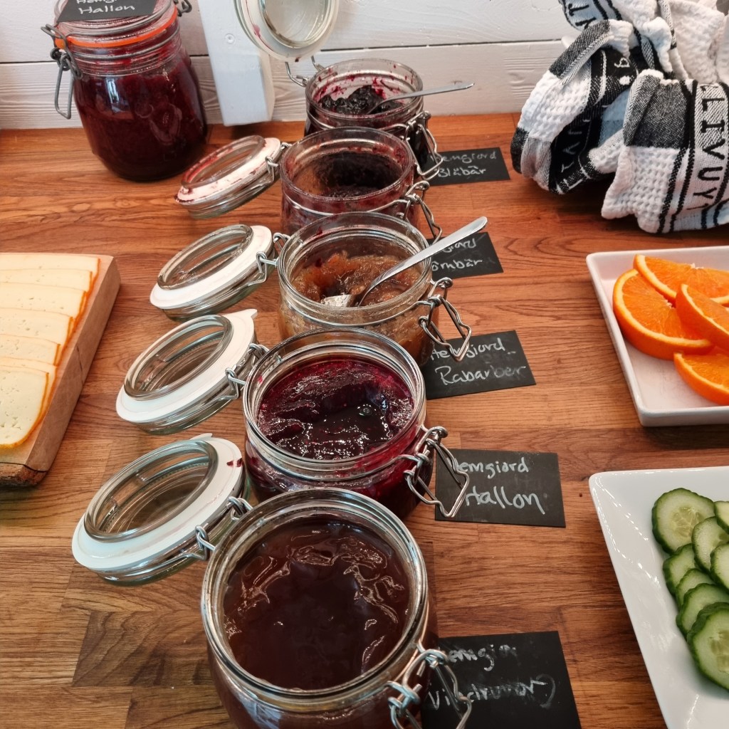 Och på tal om frukost… Varje morgon dukas en buffé upp med hemgjorda sylter, hembakat bröd och en vansinnigt god granola. Det man verkligen kan kalla ”lyxfrukost”. Vid vackert väder kan du sitta vid något av trädgårdens alla små bord, och vid sämre väder finns det ett inrett växthus som ger skydd från Skånes ofrånkomliga blåst och regn snett underifrån.