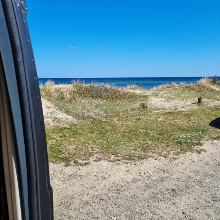 Ett stenkast från Kivik ligger Vitemölla. Och här finns fortfarande en av få fricampingplatser kvar, och när vi körde förbi så fanns det plats! Det kommer det definitivt inte att göra senare under säsongen. Och helt ärligt så blir vi förvånade om det inte finns förbudsskyltar där nästa år. Det brukar vara ganska kaotiskt med bilar där. Men nu kunde vi njuta av en kväll och morgon precis vid stranden. Livet med plåtis är allt bra bra!