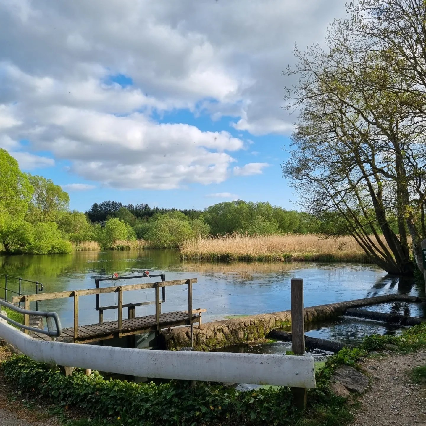 Eftersom vi åkte efter jobbet på onsdagen valde vi första stopp strax efter Stora Bältbron. Vi har ju som vanligt inte bokat nåt, men vi hittade en urmysig liten ställplats vid en vattenmölla, Sulkendrup Mølle. Här finns både fiskdamm och en uråldrig, utgräven boplats inne i skogen. Man kunde krypa in om man ville, men nej tack! Den har tydligen redan kollapsat en gång så vi tog det säkra för det osäkra.