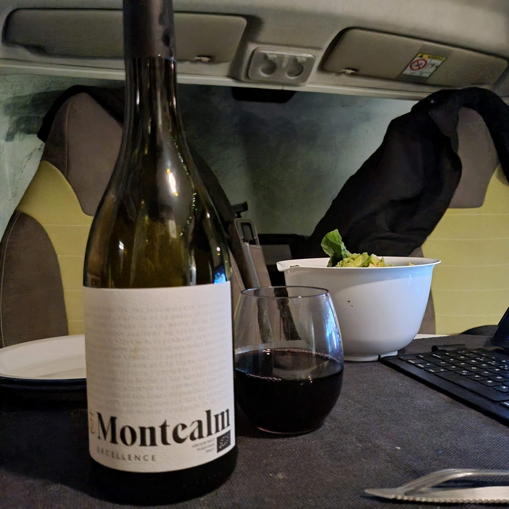 Från Camargue kommer ett vin som kallas ”le vin des sable” då vinrankorna står direkt i sanddynorna. Vi tog sikte på en av dessa vingårdar, Domain de Montcalm, där man kunde stå gratis. Det är ganska vanligt upplägg både i Italien och Frankrike. Man kan stå gratis eller för en billig peng på vingårdarna, gå på vinprovning om man vill och köpa en flaska eller två. Vi gjorde många sådana stopp i Italien sommaren 2022 och kan varmt rekommendera det! I Frankrike kan man köpa ett medlemsskap i France Passion vilket är en sammanslutning av massor med vingårdar som erbjuder just det här upplägget. Det ska vi göra nästsa gång vi är i Frankrike under en längre period.