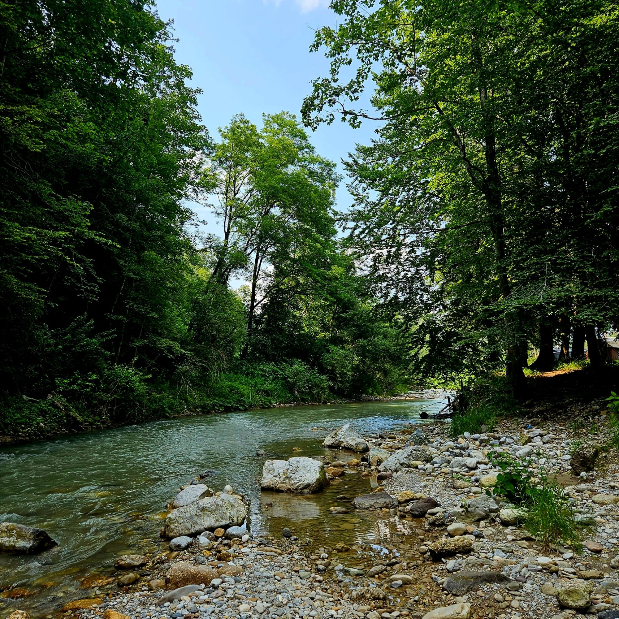 Vårt sista stopp i Slovenien blev ytterligare en farm, Tourist farm Pr Trnovec utanför Spodjne Duplje. Här stod vi nere vid en liten flod, vilket var charmigt till en början tills värmen och närheten till vattnet drev upp luftfuktigheten till närmare 85%. Och helt ärligt så var kostallet lite väl nära själva ställplatsen för att doftlökarna skulle vara helt nöjda!