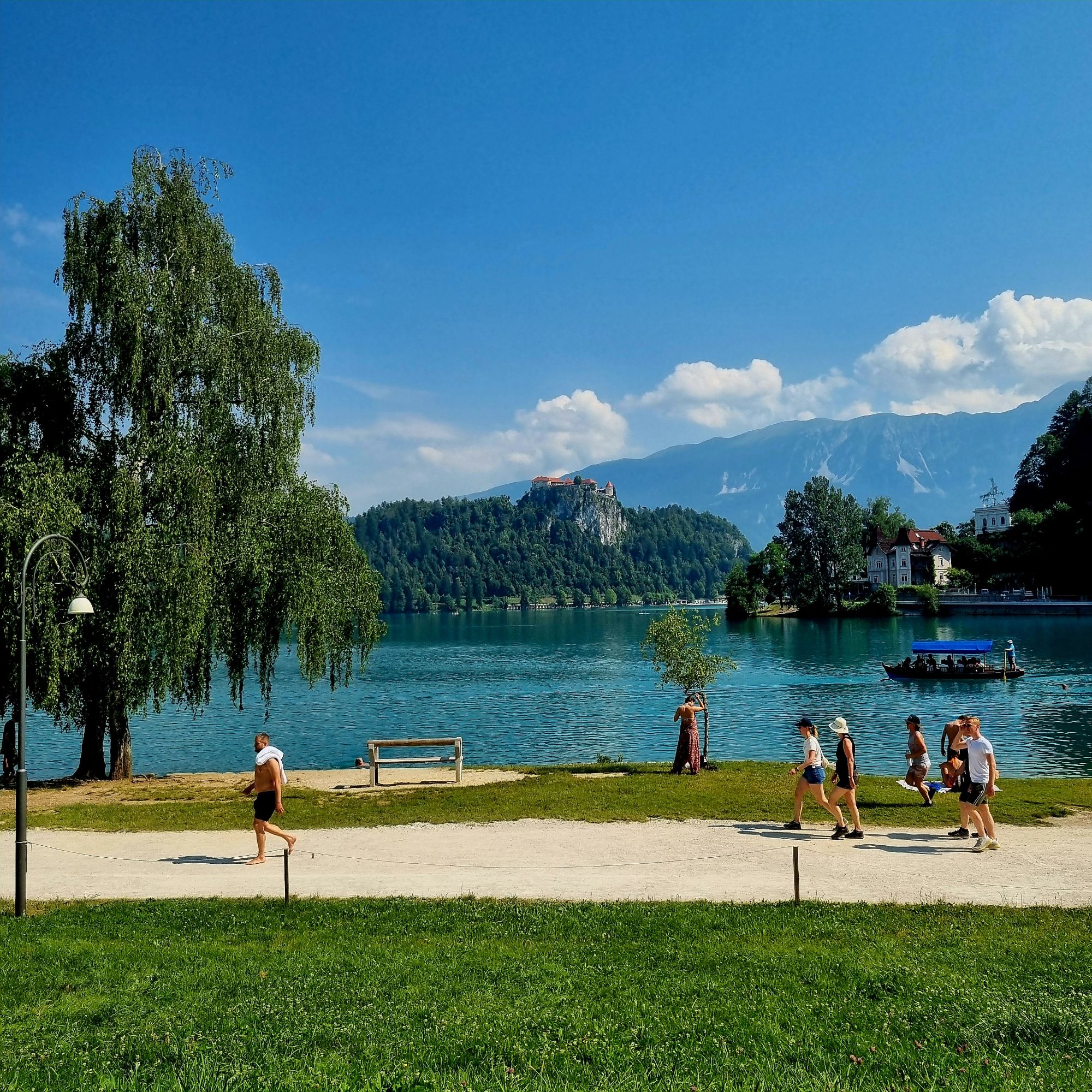 För en herrans massa år sedan gifte sig en av våra vänner i Maria himmelsfärdskyrkan på den lilla ön ute i sjön vid Bled. Vi roddes ut av de traditionella till dagen dekorerade båtarna, pletnas, till kyrkan. Det är tradition att brudgummen bär sin brud uppför de 99 trappstegen. Tur att bruden inte vägde så mycket 🙂