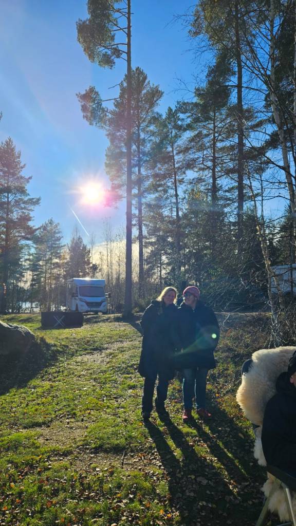 Sista eremitplatsen för året var Sundsjön. Det här var den minsta gläntan vi stod på under hösten. Men man behöver inte så mycket. Hit kan det nog vara svårt att komma med en lite större bil än vår, även om det står i appen att ngn med typ 9 meter kravlat sig ner där – imponerande! Nu märkte vi att många platser stängt för säsongen i småland. Och för jakten…