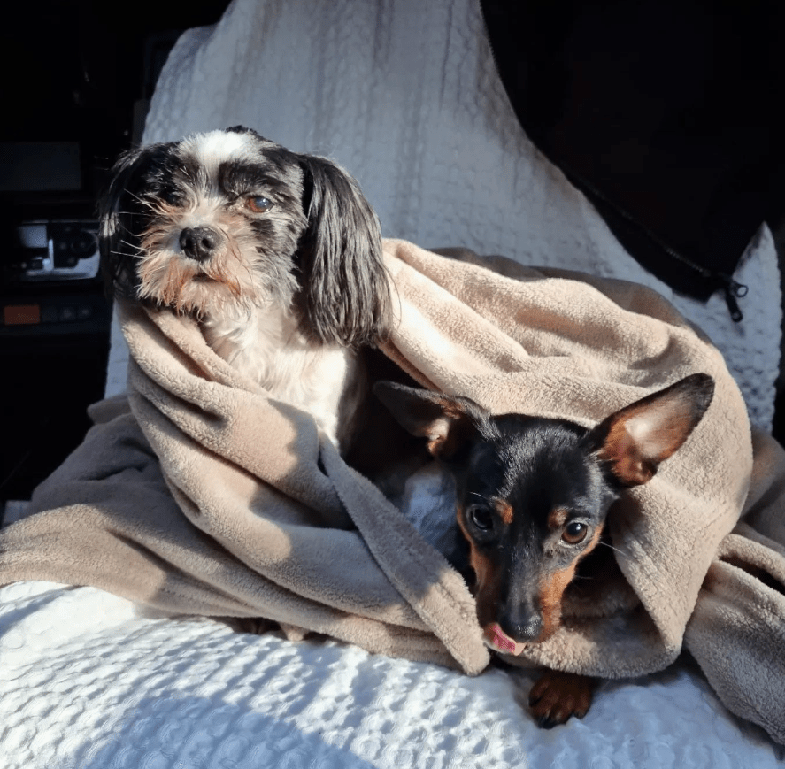 Med oss har vi även våra hund Melker, en ständigt aktiv fyraårig dvärgpinscher. Vi har i juni 2025 sagt farväl till vår älskade Gaston (2011-2025), som fortfarande är högst närvarande i vårt liv.